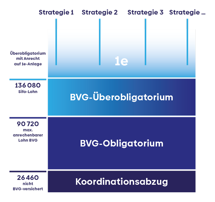 Bieten Kadermitarbeitenden mit höherem Einkommen individuelle Lösungen in der Anlagestrategie, welche selbst mitbestimmt werden kann. Die Vorsorgelösung kann individuell pro versicherte Person angepasst werden.